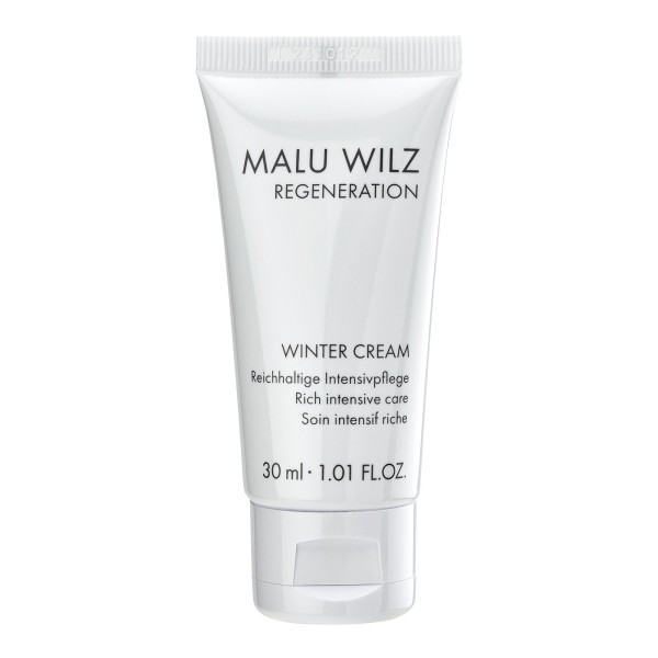 Die Malu Wilz Wintercream ist eine Feuchtigkeitscreme, die speziell für die Bedürfnisse der Haut während der kalten Wintermonate entwickelt wurde. Sie enthält Inhaltsstoffe wie Sheabutter und Mandelöl, die die Haut intensiv pflegen und vor dem Austrocknen schützen. NEU - Der Tiegel ist Nachfüllbar ! Die besonders reichhaltige und doch leichte Textur der Winter Cream pflegt die in der kalten Jahreszeit durch Schnee, Wind und trockene Heizungsluft strapazierte und gestresste Haut. Wertvolle Inhaltsstoffe, wie Allantoin, Shea Butter und Panthenol mildern Irritationen und Rötungen, pflegen die Haut geschmeidig weich und versorgen sie mit ausreichend Feuchtigkeit. Ein einzigartiger Wirkstoffkomplex aus pflanzlichen Inhaltsstoffen schenkt der Haut nachhaltigen Schutz und Pflege. Der im Komplex enthaltene Ballonrebenextrakt harmonisiert und schützt irritierte Haut, Echiumöl stärkt die Hautbarriere und Sonnenblumenöl liefert wichtige Aufbaustoffe wie Phytosterole und Squalan. So wird die Haut auch im Winter optimal geschützt und nachhaltig gepflegt. INGREDIENTS: AQUA (WATER), OCTYLDODECANOL, GLYCERYL STEARATE, OLEYL ERUCATE, GLYCERIN, ISOSTEARYL ISOSTEARATE, CAPRYLIC/CAPRIC TRIGLYCERIDE, CETEARYL ALCOHOL, SQUALANE, SORBITOL, BUTYROSPERMUM PARKII (SHEA) BUTTER, HYDROGENATED COCO-GLYCERIDES, PHENOXYETHANOL, PANTHENOL, PARFUM (FRAGRANCE), XANTHAN GUM, METHYLPARABEN, ALLANTOIN, ALCOHOL, ECHIUM PLANTAGINEUM SEED OIL, ETHYLPARABEN, BUTYLPARABEN, TOCOPHEROL, TETRASODIUM GLUTAMATE DIACETATE, HELIANTHUS ANNUUS (SUNFLOWER) SEED OIL, PROPYLPARABEN, ASCORBYL PALMITATE, CARDIOSPERMUM HALICACABUM FLOWER/LEAF/VINE EXTRACT, ASCORBIC ACID, CITRIC ACID, SODIUM HYDROXIDE |